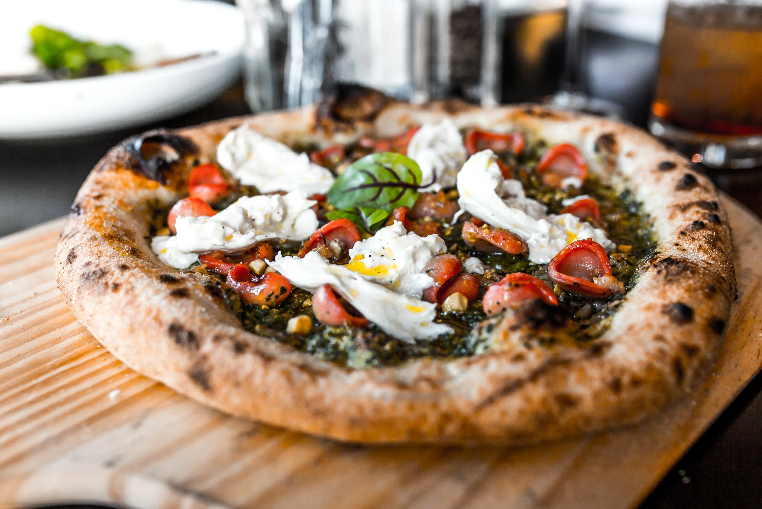 The result is a pizza with a delicate balance of texture — slightly blistered crust, a soft interior, and just enough char to highlight the flavor of the dough. It’s the kind of pizza that doesn’t need to be overloaded with toppings to stand out.